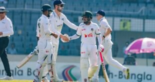 আয়ারল্যান্ডের বিপক্ষে সিরিজের দ্বিতীয় টেস্টে মুশফিকুর রহিম ও লিটন দাসের দুর্দান্ত শতকে ভর করে ৪৭৬ রান করেছে বাংলাদেশ। মির্ডল অর্ডারের ব্যাটারদের দৃঢ়তায় একপর্যায়ে মনে হচ্ছিল টাইগাররা পাঁচ শতাধিক রান করতে পারবে। তবে শেষ দিকের ব্যাটাররা প্রত্যাশা অনুযায়ী রান করতে ব্যর্থ হওয়ায় ৫০০ রানের মাইলফলক স্পর্শ করা হয়নি। এই ইনিংসে প্রথমবারের মতো চতুর্থ, পঞ্চম ও ষষ্ঠ উইকেটে শতরানের জুটি গড়া হলো। …