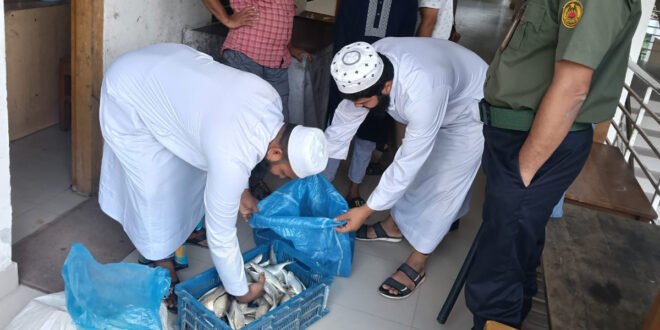মাছগুলো দুটি স্থানীয় এতিমখানায় বিতরণ করা হয়েছে।