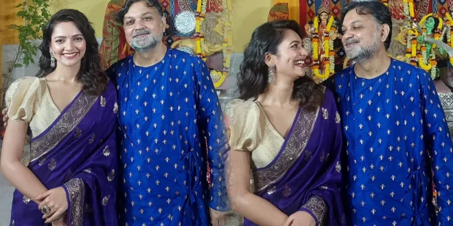 শেয়ারকৃত সেই ছবিতে দেখা যায়, পূজামণ্ডপে বেশ মিষ্টি হাসিতে ধরা দিয়েছেন এ জুটি। ম্যাচিং করা পাঞ্জাবি আর শাড়িতে বেশ মানিয়েছে তাদের।